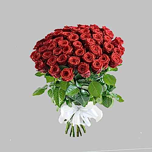 Ürünümüz 101 adet 1. sınıf Kırmızı Gül ve mevsim yeşillikleri ile hazırlanmaktadır.