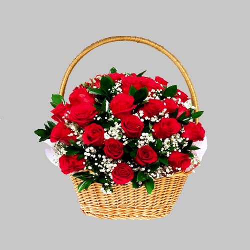 Ürünümüz sepet içerisinde 1. sınıf 24 adet Kırmızı Gül ve mevsim yeşillikleri ile hazırlanmaktadır.
