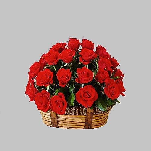 Ürünümüz sepet içerisinde 1. sınıf 33 adet Kırmızı Gül ve mevsim yeşillikleri ile hazırlanmaktadır.